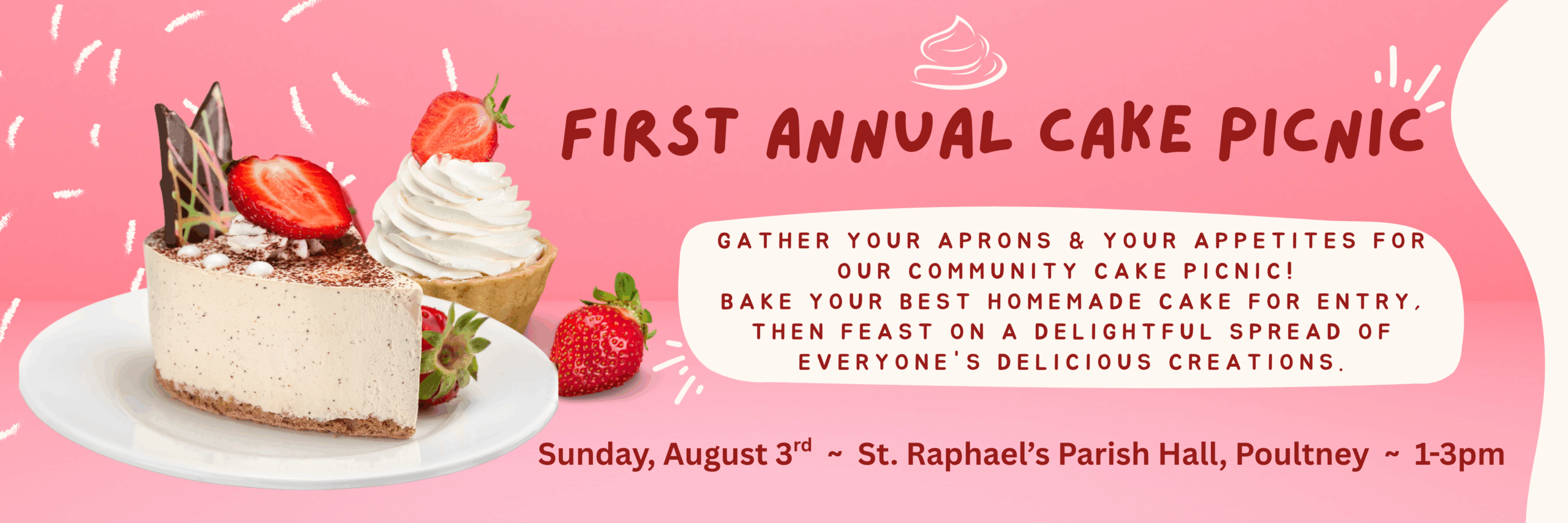 Ready, Set, Bake! Join us for our First Annual Cake Picnic - a celebration of community, connection and the sweetness of summer! Open To All!  Please share and encourage others...